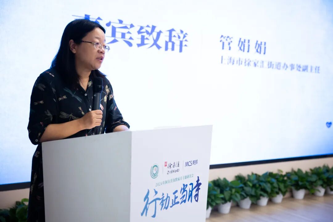徐家汇街道办事处副主任管娟娟现场致词,为《阿尔茨海默病,到底该医还是养》的研讨会拉开序幕。上海市精神卫生中心老年精神科主任医师李霞女士带来了《主动脑健康,我们在行动!》的精彩演讲,她以生动的案例和科学的视角,阐述了早期干预的重要性,鼓励大家“主动跑赢阿尔茨海默病”。美邸中国认知症研究院秘书长王辉,从“养”的角度,讲解了通过专业的照护服务,如何提升认知症患者的生活质量,为家庭和社会提供有力的支持。